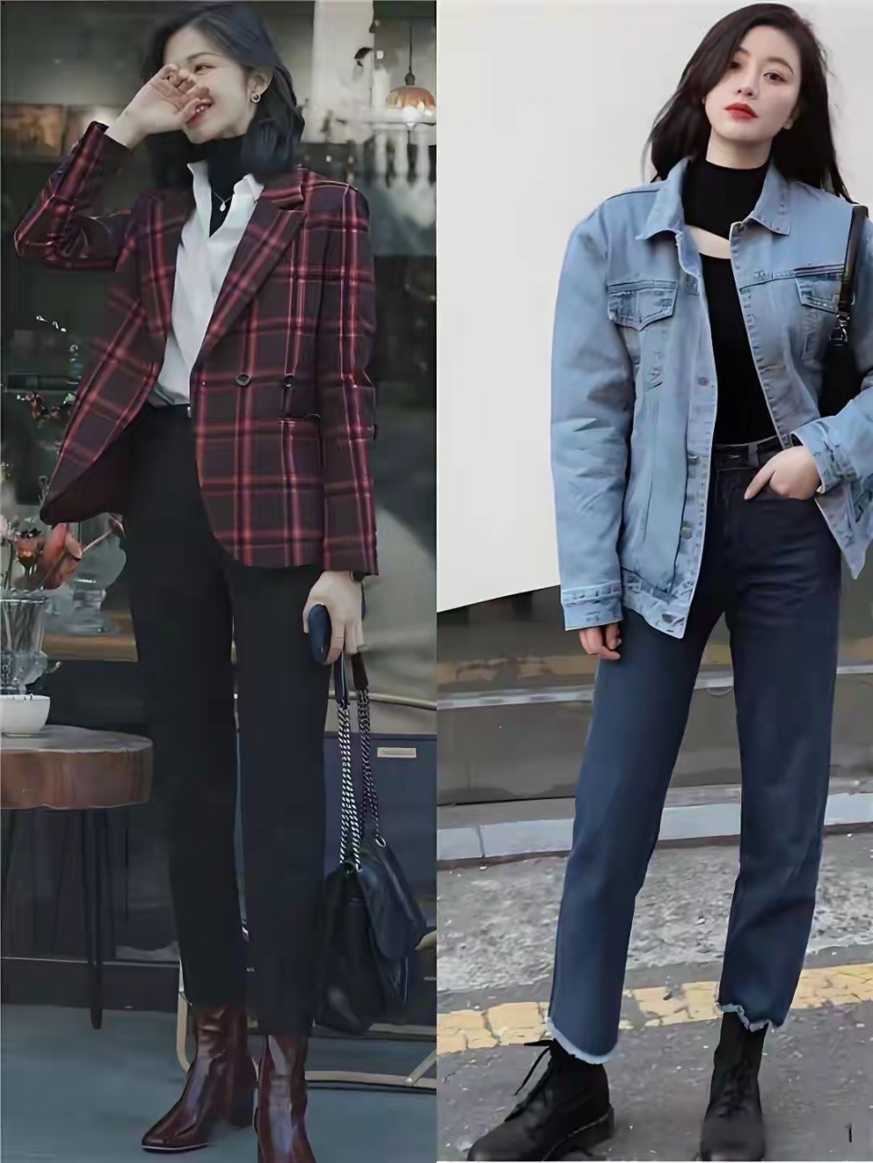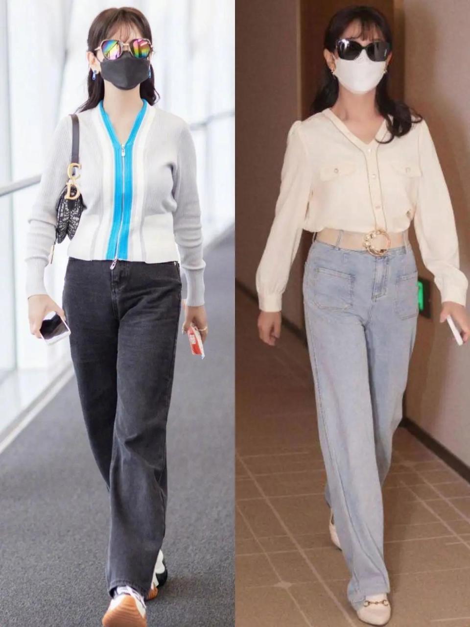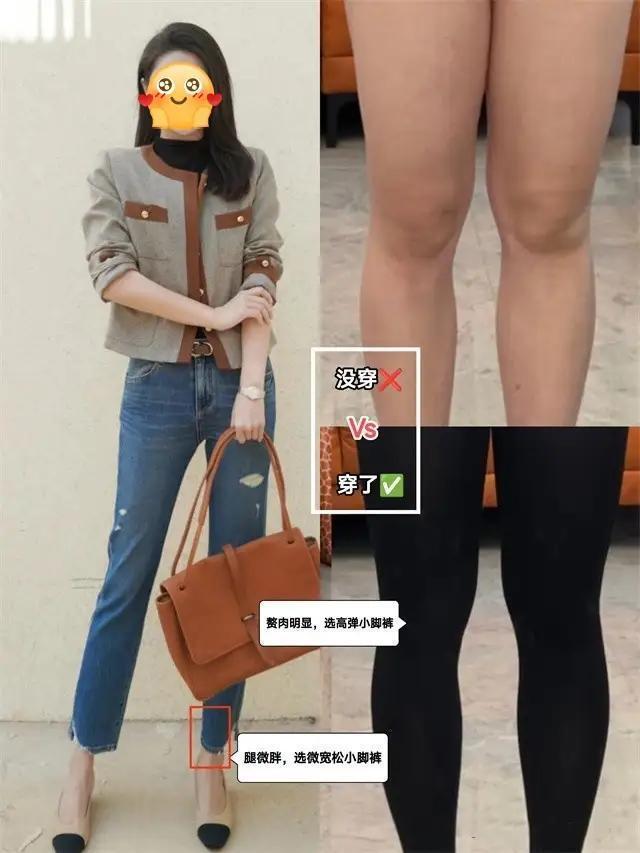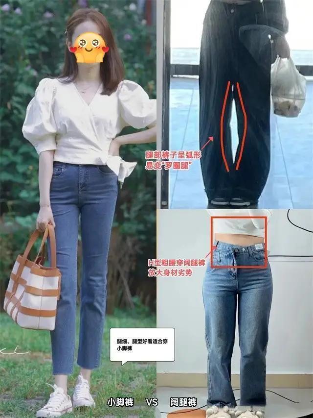 如果你真的喜欢穿收脚裤,或者是小脚裤,这时候你的腿要细,修长笔直,这样的好看腿型才能穿左边的这条9分小脚牛仔裤。