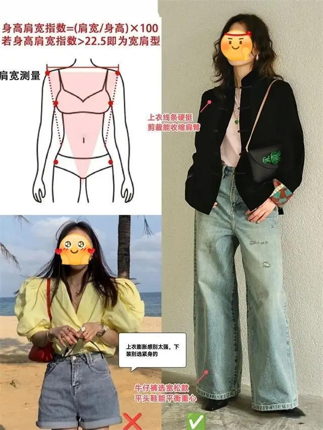 如果身材偏胖,或者是臀型扁塌,胯宽腿粗,这时候我们直接选择高腰小脚款的牛仔直筒阔腿裤来搭配,最为遮肉。