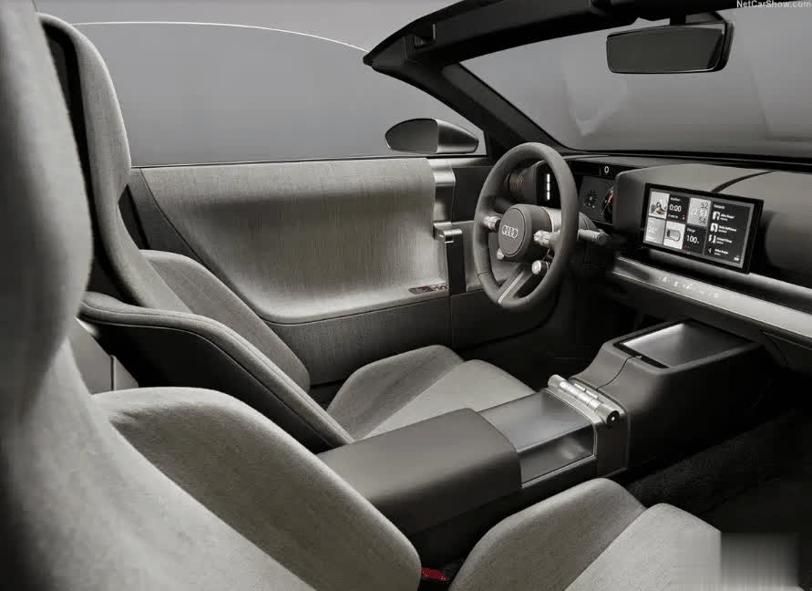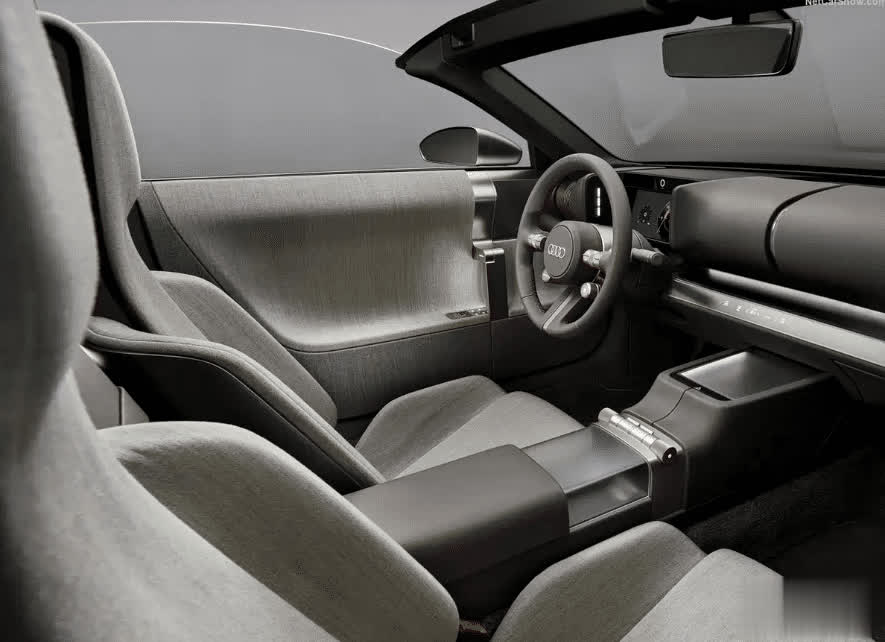内饰方面,新车采用环抱式座舱设计,内饰采用大量环保材料,三辐式多功能方向盘贴近传统样式,10.4英寸中控屏采用可翻折设计,隐藏后整体感更强。奥迪Concept C车内所有的物理按键均采用阳极氧化铝材质,能带来机械质感的触觉体验。