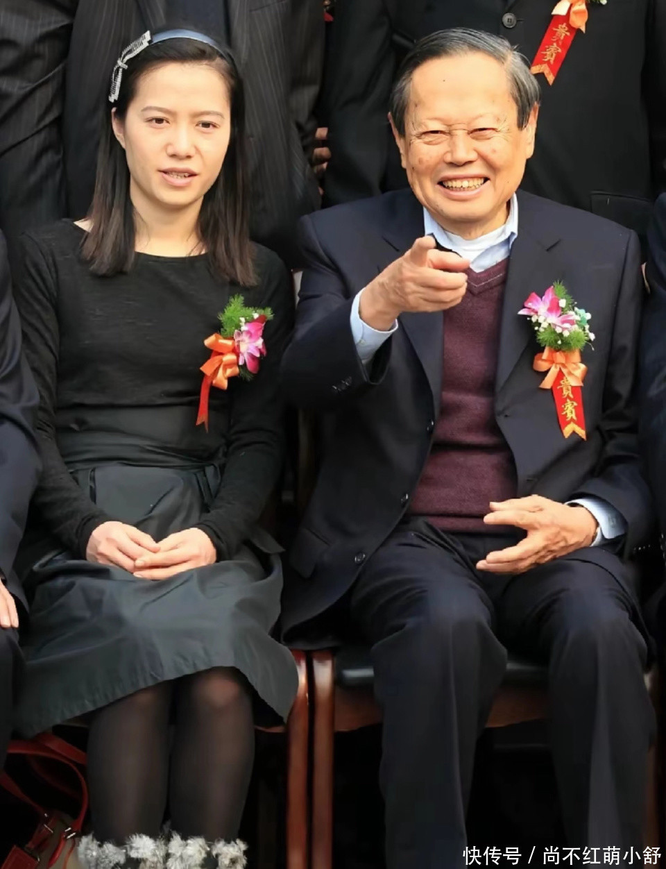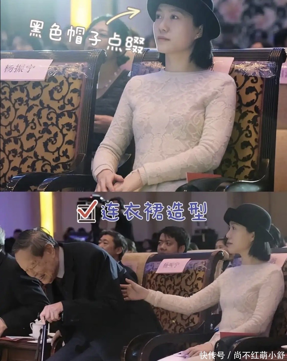 与老公杨振宁出席活动时的连衣裙是经典案例,长度到小腿肚中间,首饰只戴一顶帽子,避免过度装饰,整体简约又低调,符合她沉稳的气质。