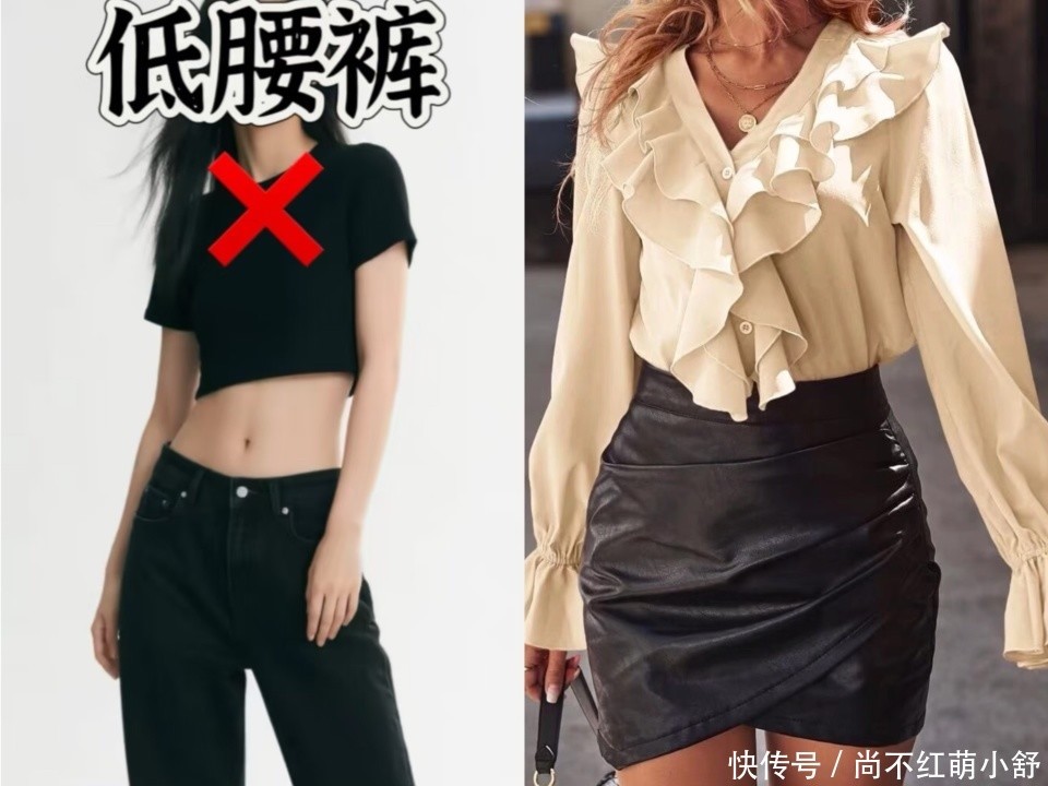 ❌ 低腰裤:腰腹有肉的话,低腰会让赘肉被勒出“游泳圈”,换成高腰款立刻显瘦10斤。
