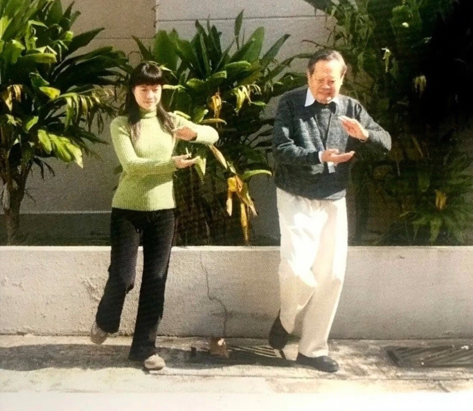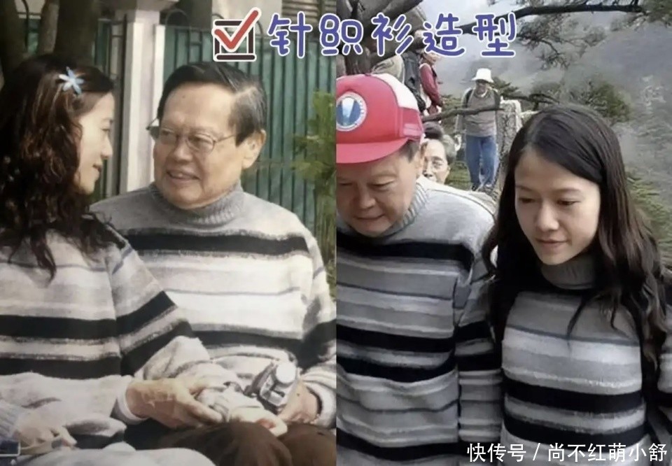 她陪杨振宁散步时的浅灰色针织情侣装值得借鉴,针织衫盖住臀部,搭配九分烟管裤或者阔腿裤,露出脚踝更显高。搭配破浪卷发,蓬松的发型,更能她的彰显气质。